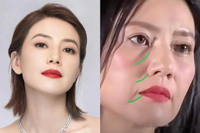 45岁的高圆圆感觉一下子变老了,脸型有点不抗老,法令纹和木偶纹太明显,体态也年轻了。